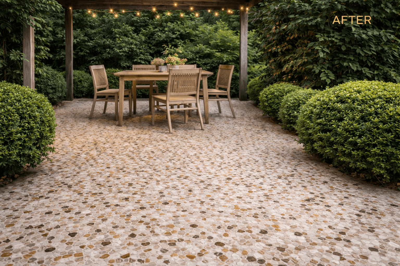 A custom designer epoxy flooring project executed for a contemporary living room.